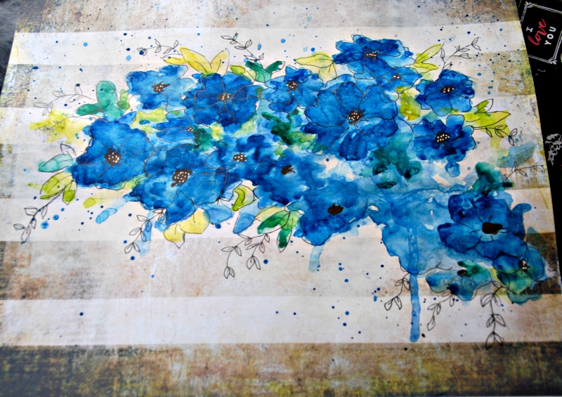 Time to get out my Dina Wakley Scribble Sticks. I added black to the centre of the flowers.