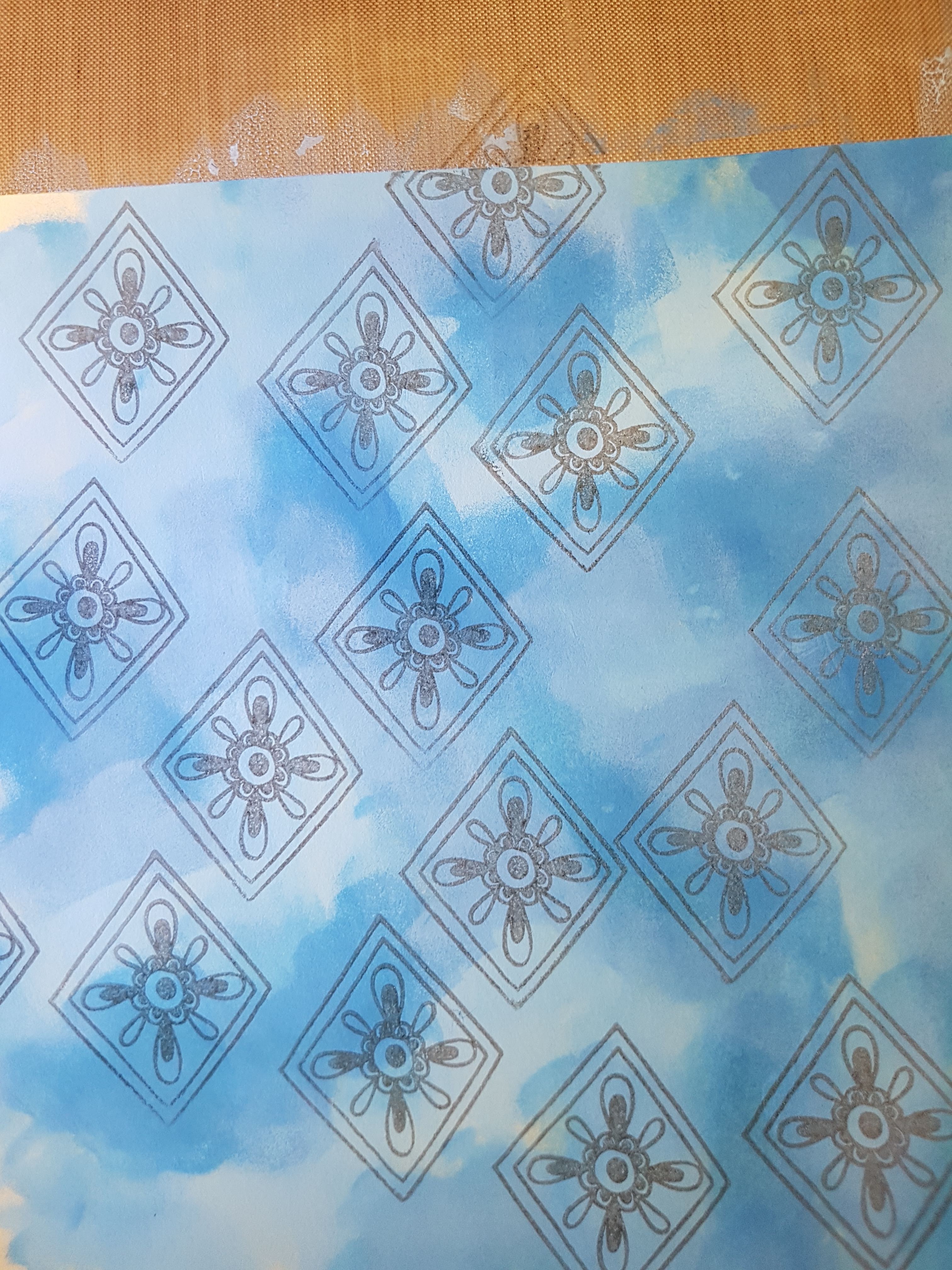 Next to make the markings on his hide, I sponged two blues onto some spare card. (I forgot to take a photo of these for my records so I can't really say which ones I used.)